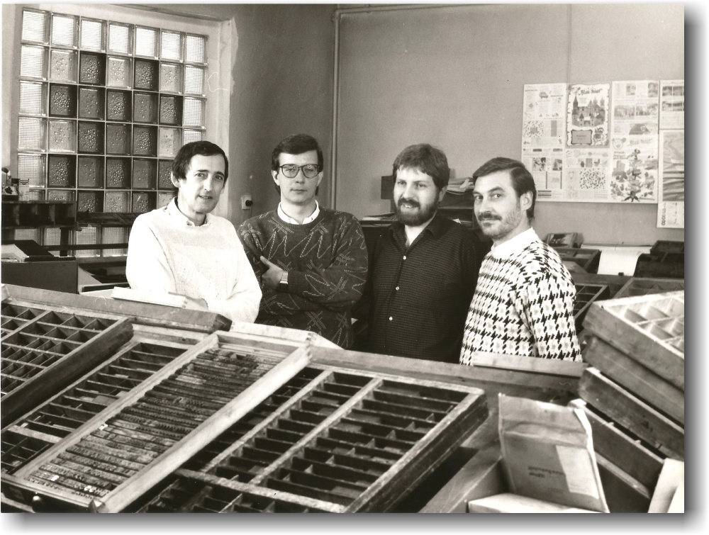 1990 Das Gründerteam (v.l.n.r.) Ludwig Vater, Jens Henkel, Johannes Gentsch und Winfried Henkel