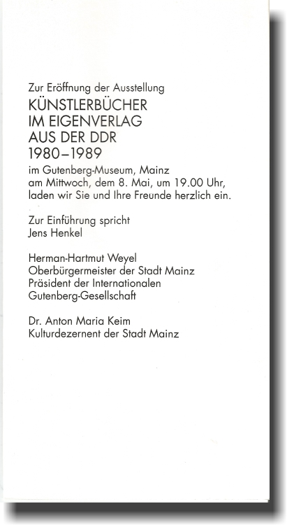 1991 Einladung Gutenbergmuseum Mainz