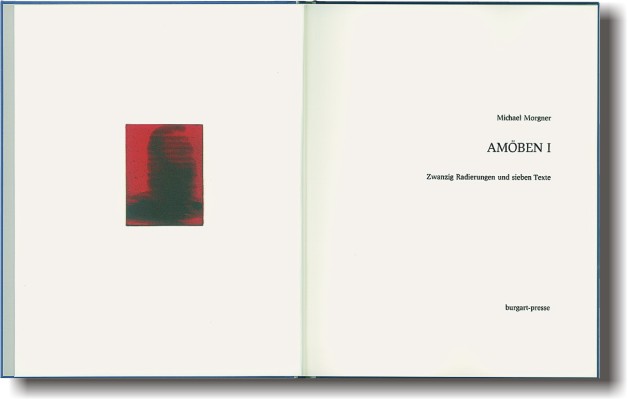 Die zweibändige Edition erscheint anlässlich des 70. Geburtstages von Michael Morgner. Der erste Band enthält neben einem graphischem Selbstporträt zwanzig Radierungen und handschriftliche Texte des Künstlers, die unmittelbar autobiographische Bezüge aufweisen. Sein faksimiliertes Skizzenbuch, das interessante Aufschlüsse über das jahrzehntelange Werden seiner charakteristischen Bildfigurationen gibt, ist Inhalt des zweiten Bandes. Friedrich Dieckmann verfasste dazu den Essay "Brigadebuch". Der Druck erscheint im II. Quartal 2012 in einer einmaligen Auflage von 65 Exemplaren; 50 arabisch nummerierte Exemplare sind zum Verkauf bestimmt, 15 Künstler- und Verlegerexemplare werden römisch nummeriert. Format: 31 x 26 cm. Beide Bände im Impressum vom Künstler signiert. Hahndruck Kranichfeld übernimmt den Buchdruck. Die Handeinbände und den Schuber fertigt Ludwig Vater in Jena. Amöben I: 60 Seiten, 21 teils mehrfarbige Radierungen (Druck Matthias Mann) und sieben faksimilierte handschriftliche Texte, Halblederband Amöben II: 110 Seiten, Reprint des Skizzenbuches mit einem Essay von Friedrich Dieckmann, Halblederband |